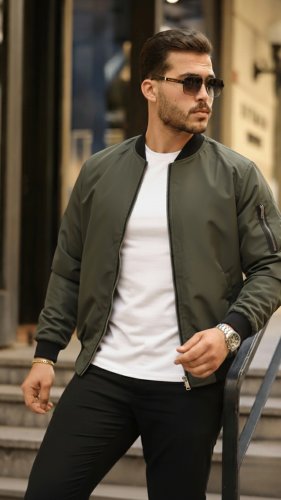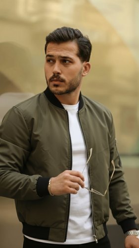 • Erkek içi Astarlı Fermuarlı Bomber Mont Ceket Haki